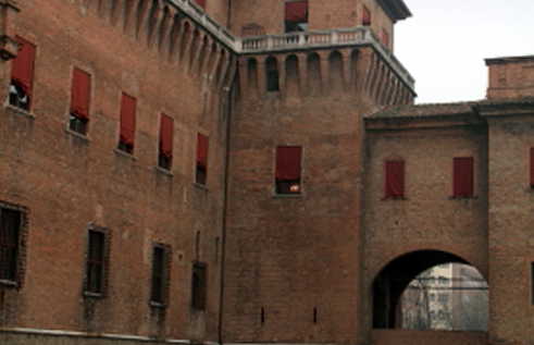 Eu diria que é o primeiro edifício civil da cidade, a Castello Estense ou Castelo do Oriente,Também e conhecido como Castelo de San Michele, é um prédio de tijolos tem quatro torres defensivas e cercado por um fosso e está localizado no centro da cidade, a poucos passos da catedral e do palácio. Foi construído a partir de 1385 e foi parcialmente restaurado em 1554.Os pavilhões na parte superior das torres são do último ano. Mas parece realmente saido de um filme.