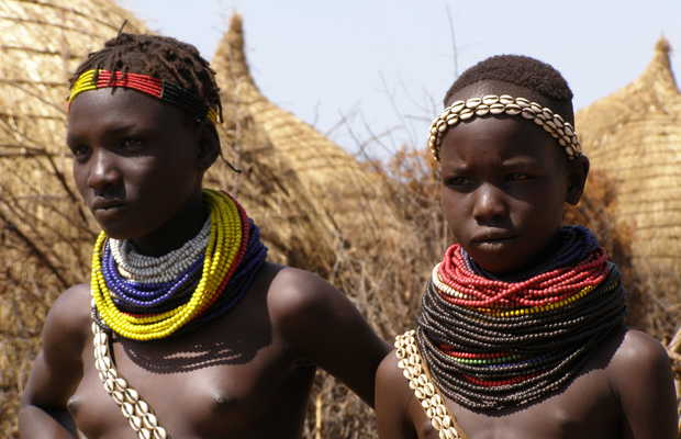 Sob um calor asfixiante, vamos conhecer uma das tribos do sul da Etiópia, perto do rio Omo, que deve ser cruzado de barco, porque não tem ponte (parece que existe um projeto, que está atrasado) .. . O leito do rio está mais abaixo, e as paredes das margens parecem cortadas com pico, e são de barro. Chear até a vila nos leva um tempinho :-). Depois a gente ia voltar pra beber uma Coca-cola ou uma cerveja gelada, ansiosamente ... mas antes fomos para uma cidade que está mais pra lá, no interior.